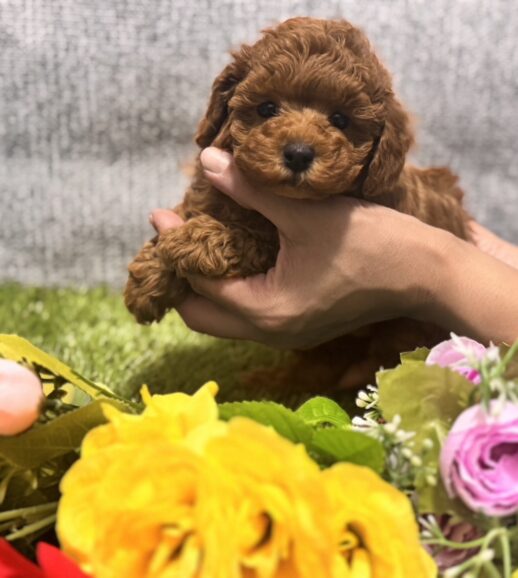 ☆特徴、容姿 ・良血統 ・毛色=レッド ・ミスカラー無し ・サイズ=トイサイズ ・毛量多め ・めっちゃ可愛いお顔です ・まんまるの瞳 ・とても懐っこい性格
